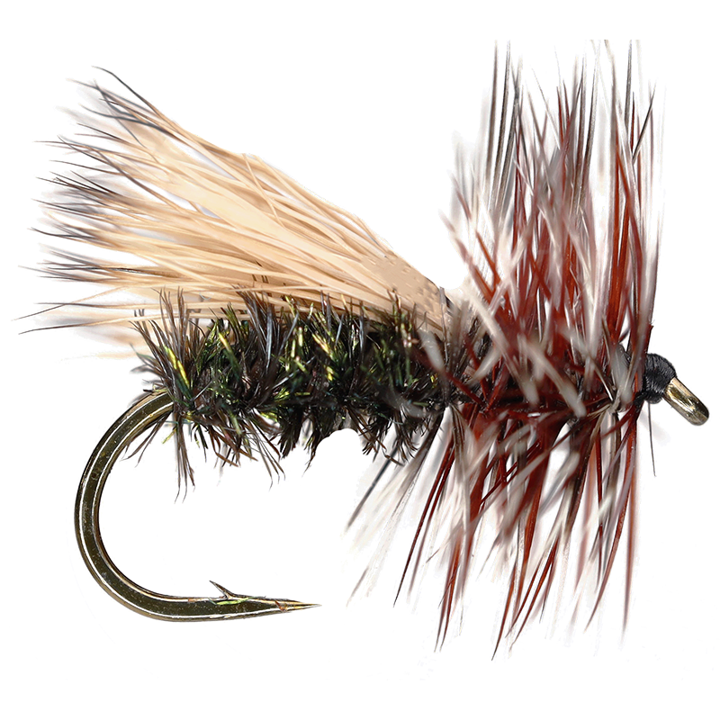 Peacock Caddis – Quick Tie Material List Peacock herl Elk hair Grizzly hackle Brown hackle Dry fly hook size 14 Black 8/0 thread